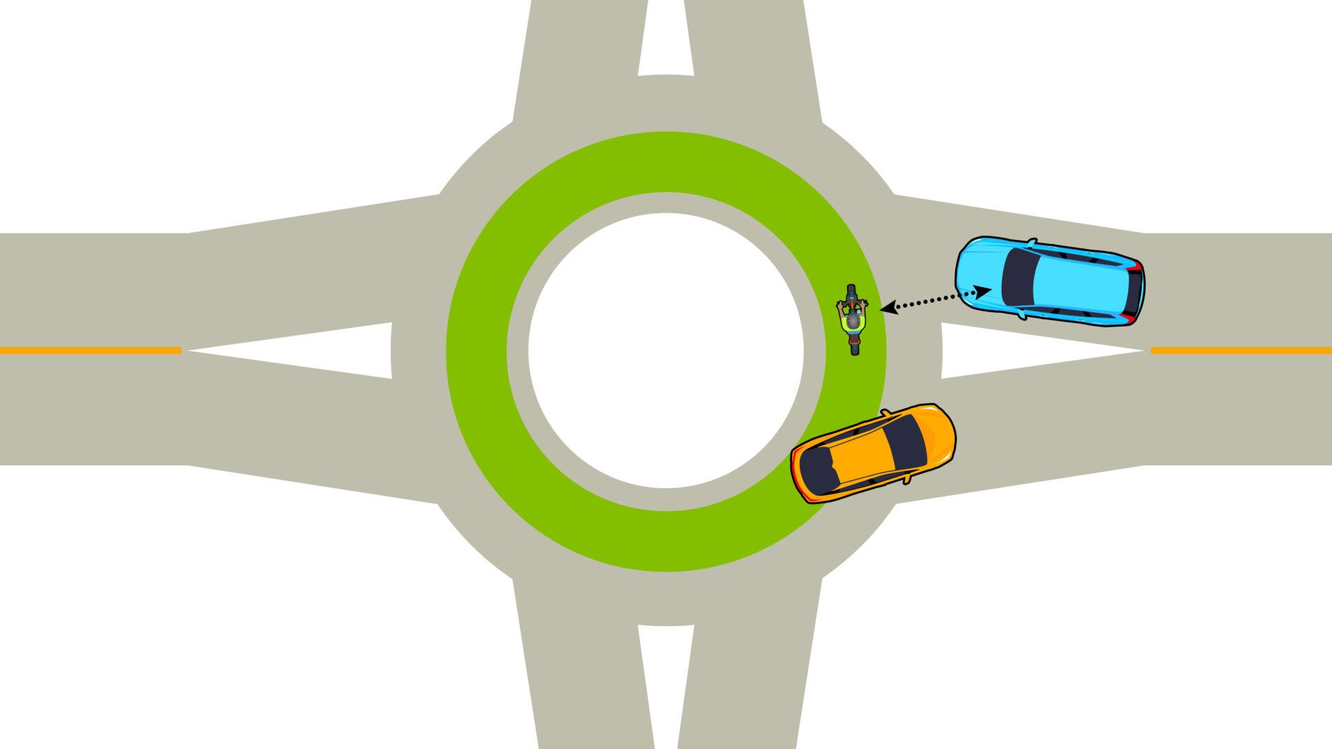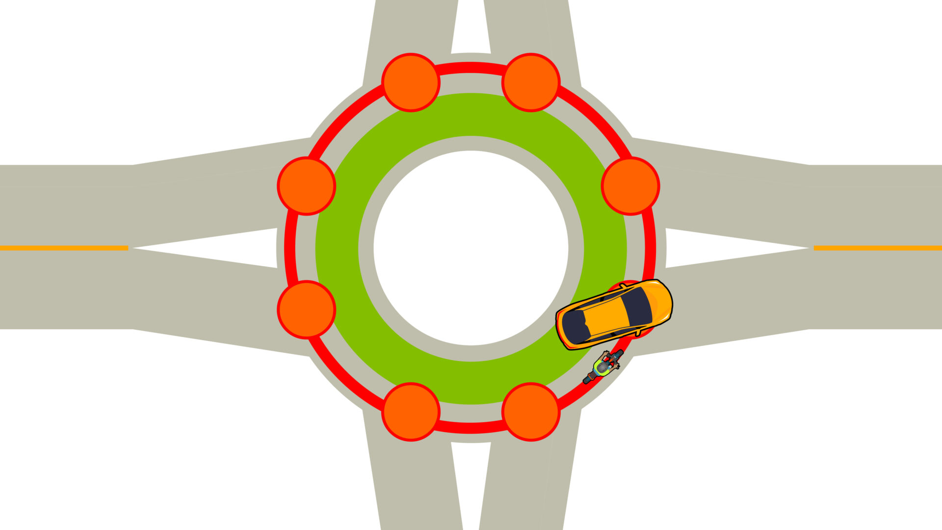 - Lane position also serves as clue to whether the cyclist is continuing around the circle or preparing to exit.